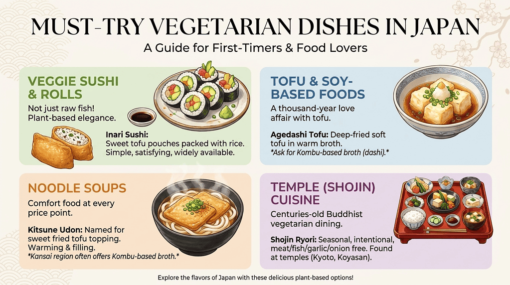 Whether you’re drawn to serene temple meals, creative vegan ramen, or the simple pleasure of a perfectly made inari sushi, there’s something here for every plant-based traveler.