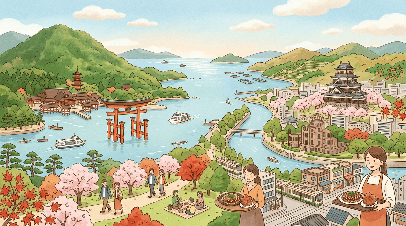 Hiroshima Prefecture is famous for its rich culinary traditions and coastal seafood. The region faces the Seto Inland Sea, which provides abundant seafood throughout the year.