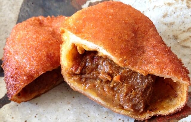 Salsa espesa de curry sobre una chuleta de cerdo frita. Otra mezcla de sabores japoneses y occidentales que se originó en Tokio en 1918.