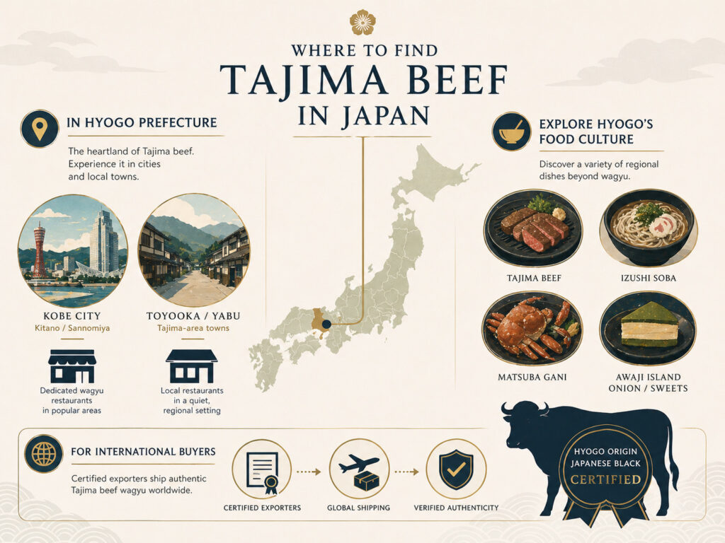 For international buyers, a growing number of certified exporters now ship authentic Japanese Tajima beef wagyu overseas. In particular, the Tajima Wagyu organization has partnered with Hyogo Prefecture to create verified purchasing channels for global consumers. Always look for certification that confirms the Hyogo origin and Japanese Black breed status.